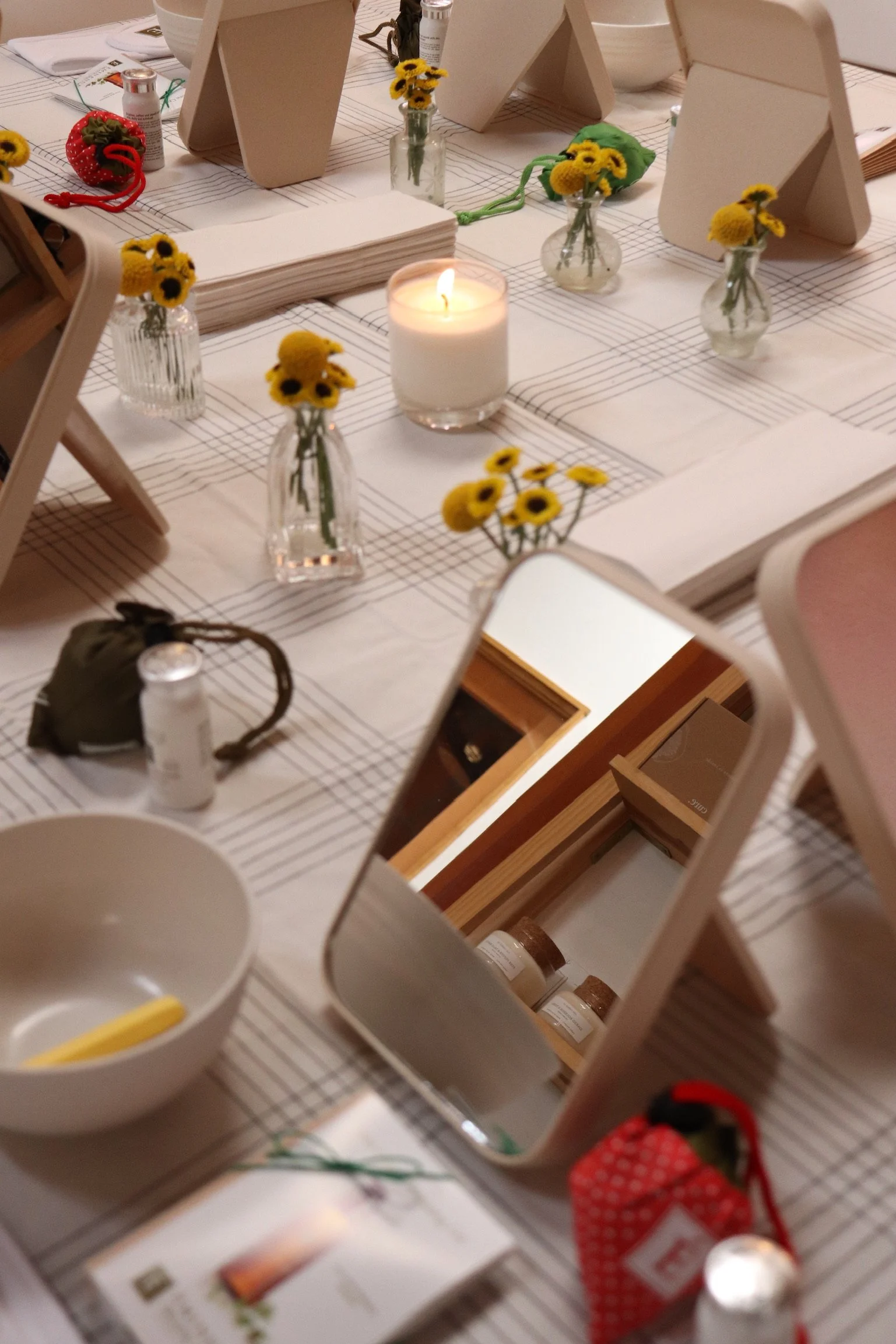 🎁 Goodie Bags – ABB tote filled with skincare headbands + curated goodies for each guest.
